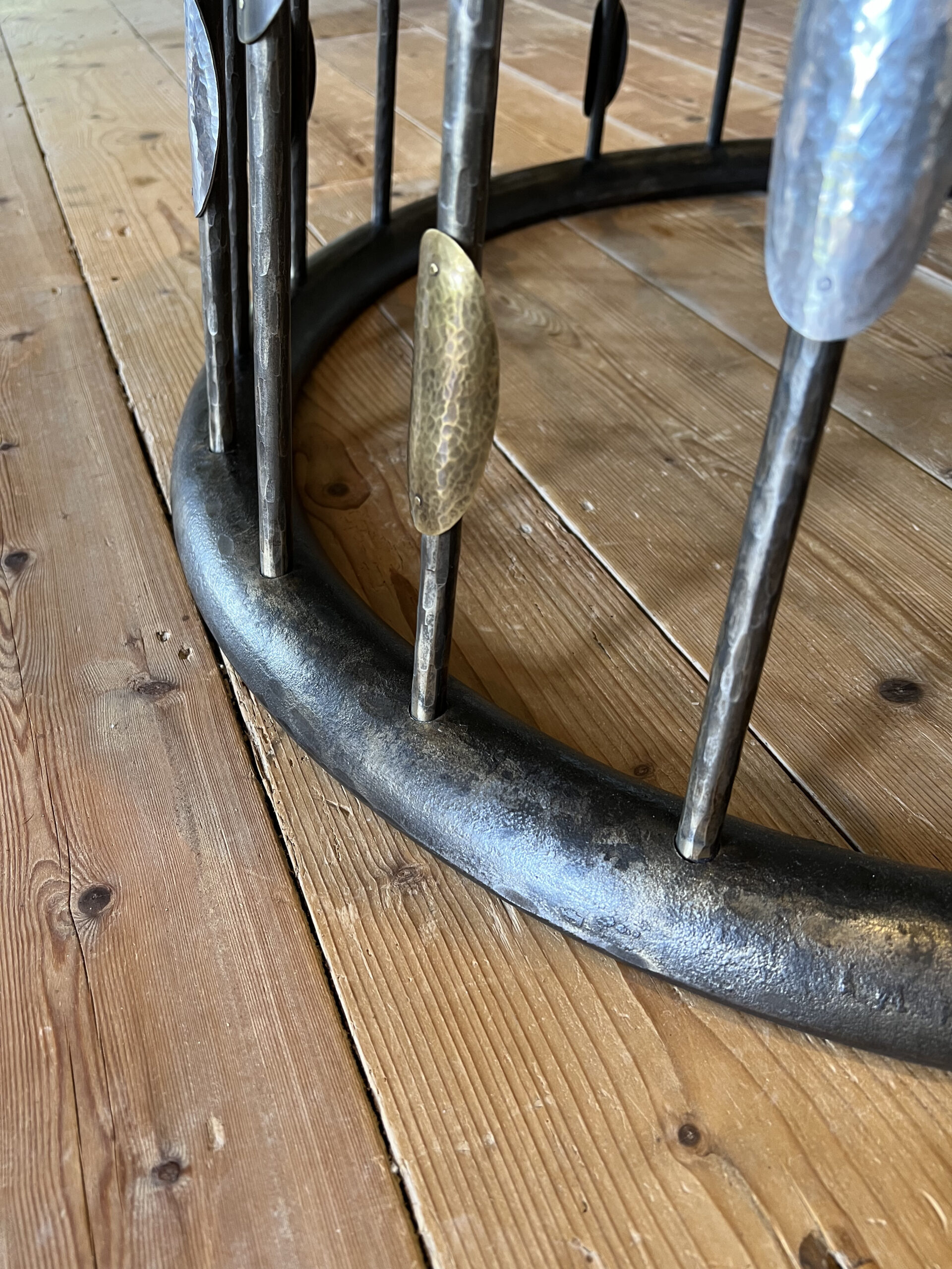 With a shared passion for handmade furniture and cabinetry, one of our long-standing clients contacted us to explore a rather specific vision: their clients were looking for two bespoke table bases that, from their initial researched and curated images, appeared to resemble basket-style table bases, decorated with a series of elliptical-shaped metal discs.
