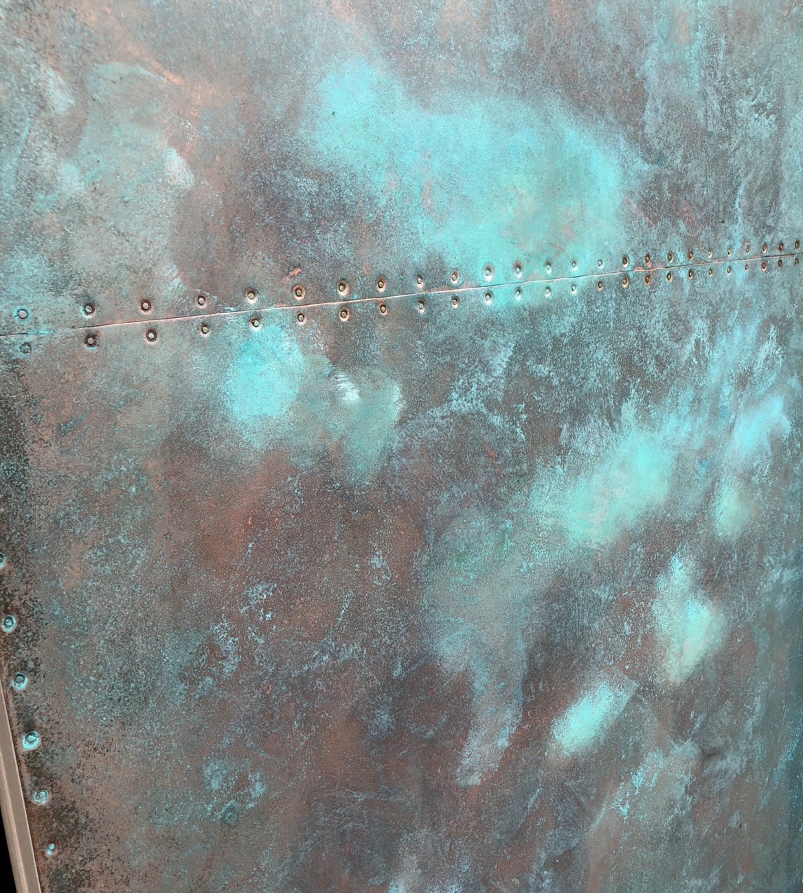 The finishes required were particularly specific, with the copper panels finished in a verdigris patina, suggesting hey had been ‘weathered’ for some time, and the zinc panels were finished with an antique patina, also suggestive of having been used (and loved) for years!